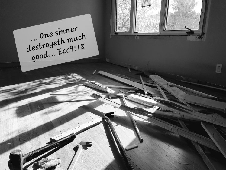 Today I’m doing demolition in a home I helped construct. The work of weeks destroyed in a few hours. I wish I had thought of the destruction I was wreaking in my life as I invited the demolition crew of sin into my life.